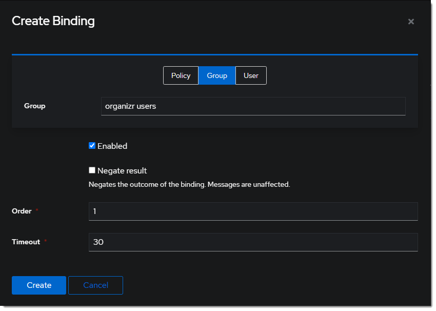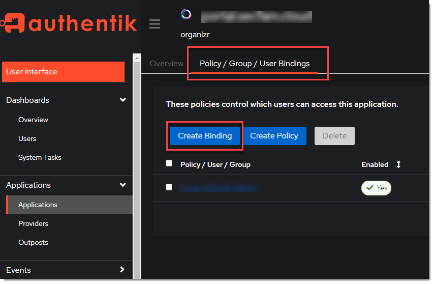 tipOptionally, bind the group to control access to the organizr to the application.