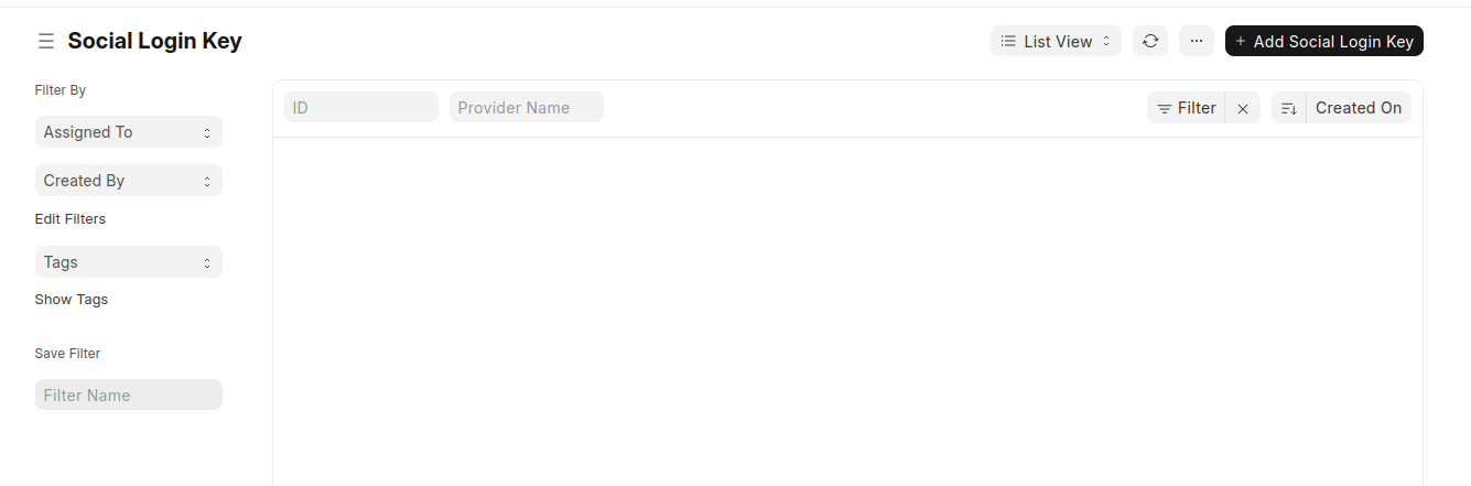 - From the Frappe main menu, go to Integrations and then select Social Login Key.