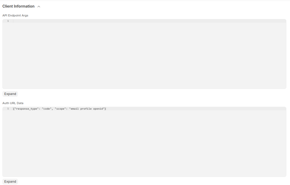 { "response_type": "code", "scope": "email profile openid" }